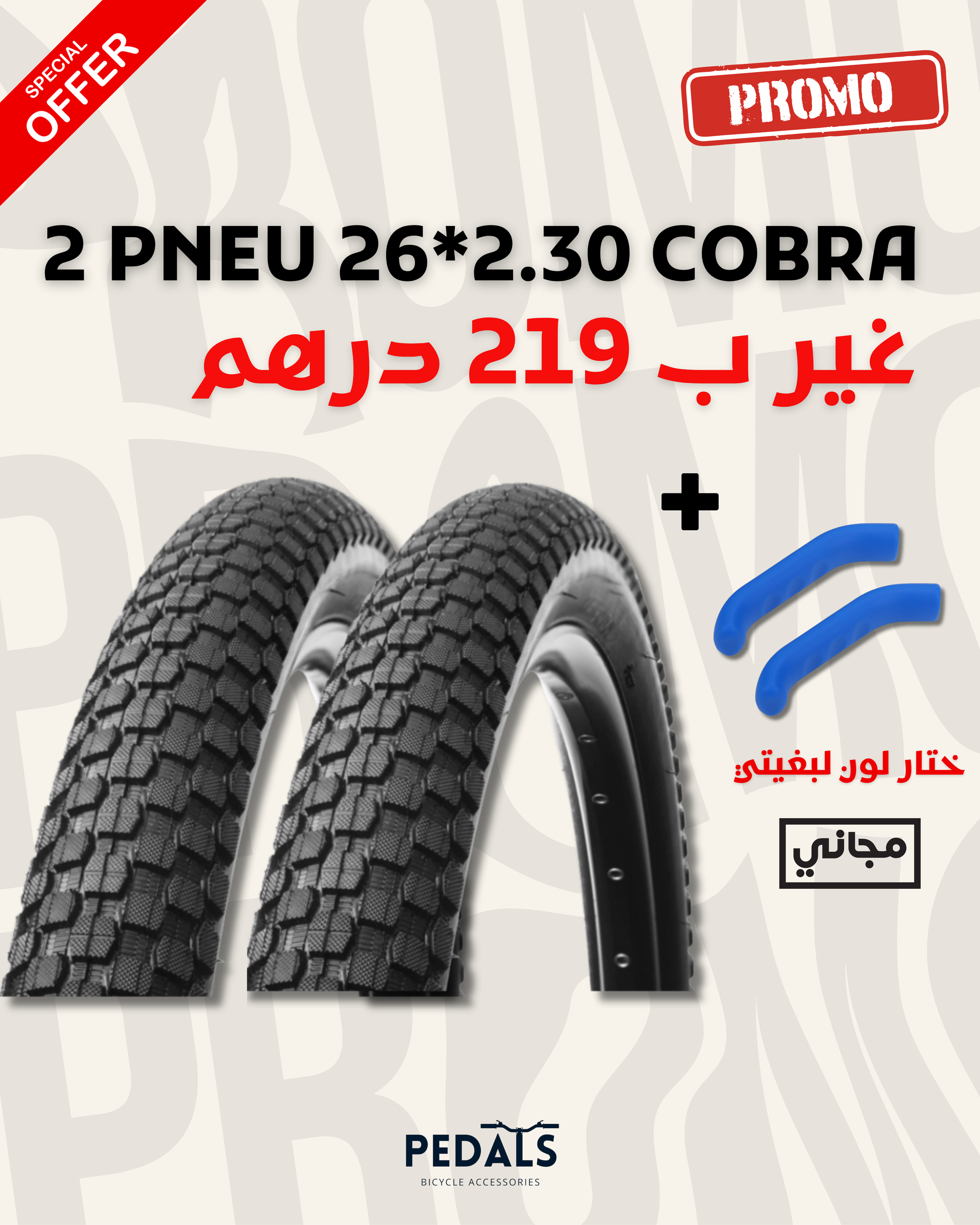 2 pneus 26×2.30 COBRA + Protège-frein (couleur de votre choix)