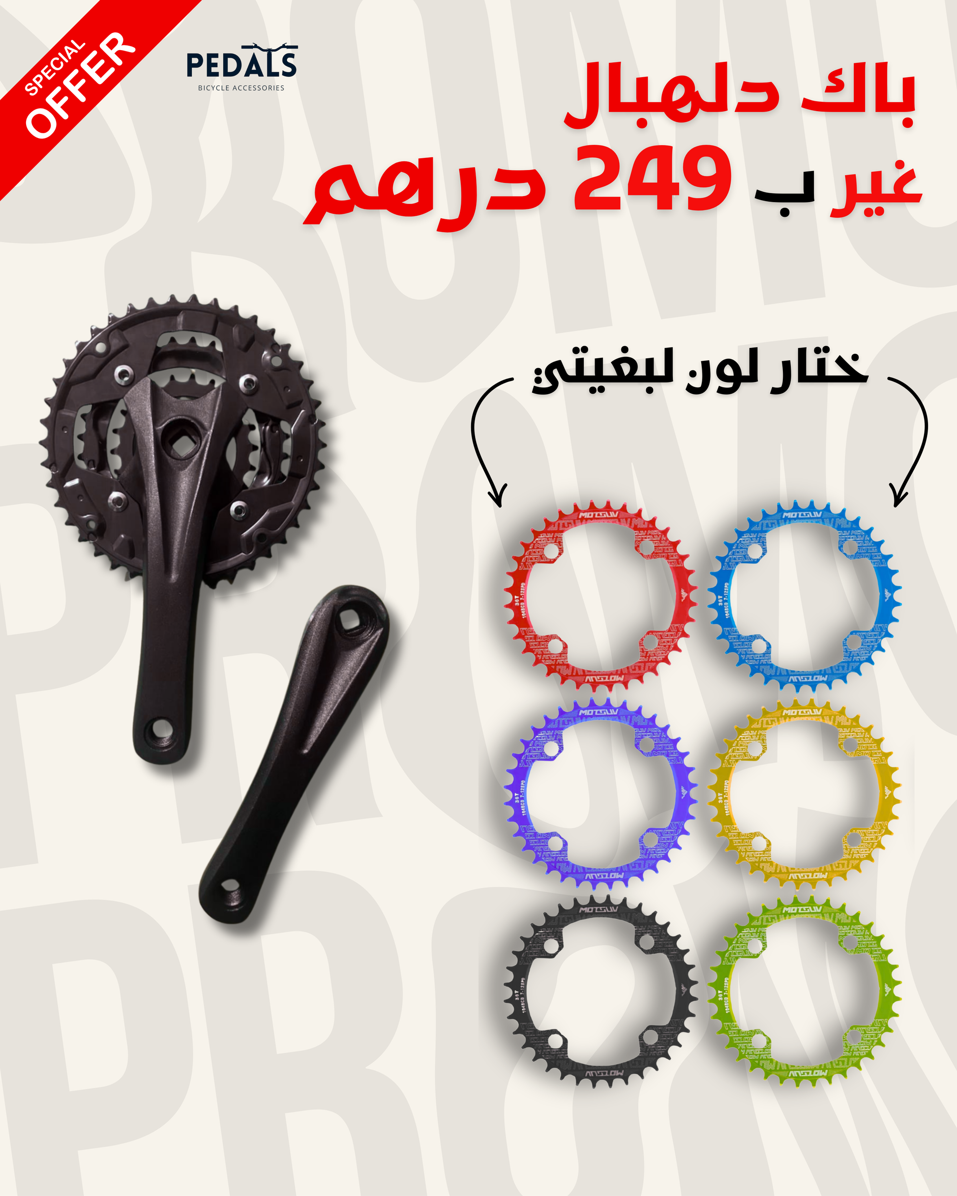 Pédalier en aluminium + mono-plateau (couleur de votre choix)